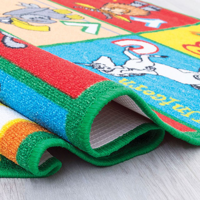 ABBEY Multi 5' X 8' Area Rug, 5x8, 10lbs. The kids will love this colorful rug! Each piece is made of 100% high quality soft nylon with non-slip cross pattern backing for hard surfaces. The kids will for sure roll around these rugs, so they feature a thick cushioned gel backing for extra com fort. A new 16-color combo technology was utilized to create bright and vivid details. Light weight for easy cleaning, the surged edges are reinforced for durability. Features: Power Loomed Pile Height: 0.30" Backing: Non-slipping Gel Nylon Made in Indonesia