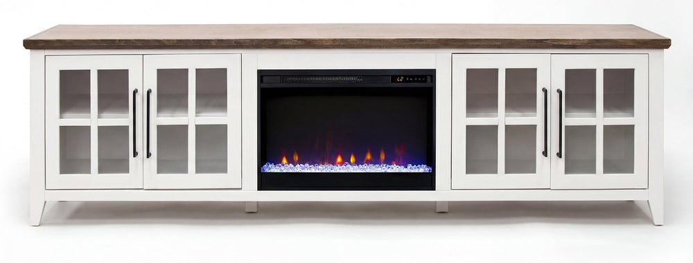 Enhance your living space with the Providence Fireplace Console TV Stand, featuring a built-in electric fireplace and sleek contemporary design. This multifunctional media console brings warmth, elegance, and convenience to your home.